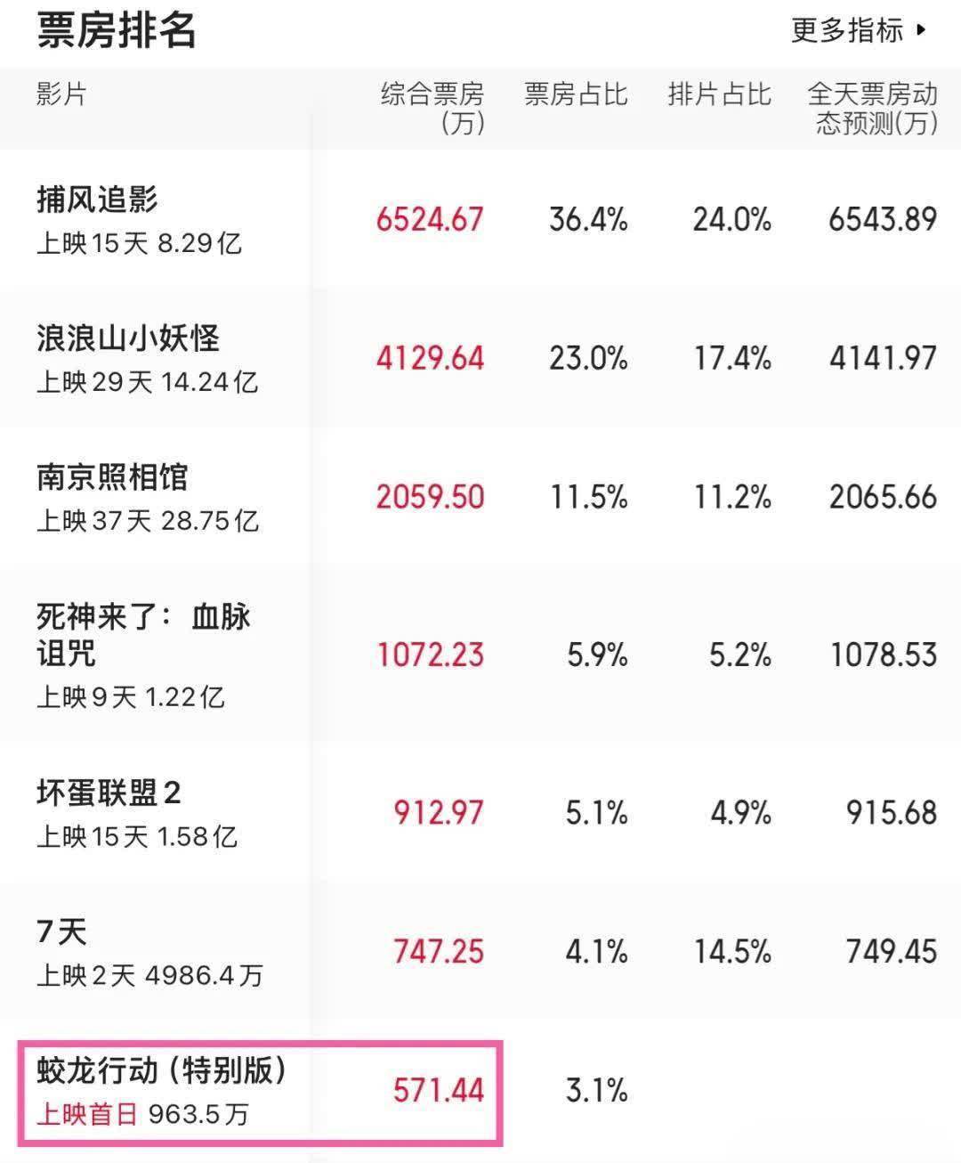 现时罕见版的点映加上映首日的票房,很快破千万,但和现时热映的《捕风追影》《浪浪山小魔鬼》《南京摄影馆》比较,差距很大。