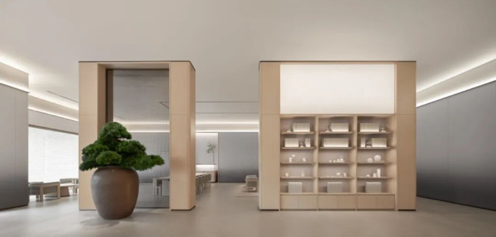 图注:全季旅舍5.0 “晓山青” 大堂茶空间