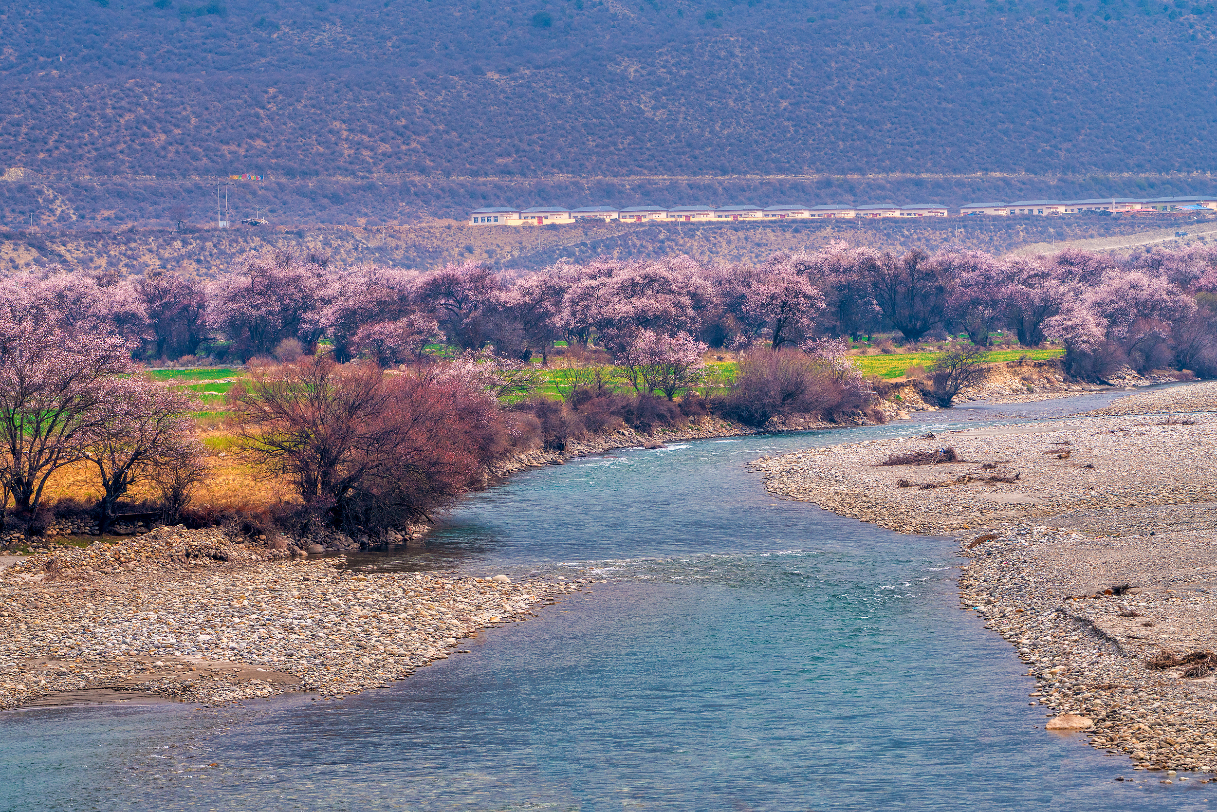 每年这个季节的林芝,都是各大旅行杂志封面的常驻嘉宾。怒放的桃花,从波密到雅鲁藏布江沿岸轮换怒放,路边的野花亦是长得大力又张扬。打卡桃花沟,布景是常年不化的南迦巴瓦峰雪山,顺手一拍都自带好意思颜滤镜。