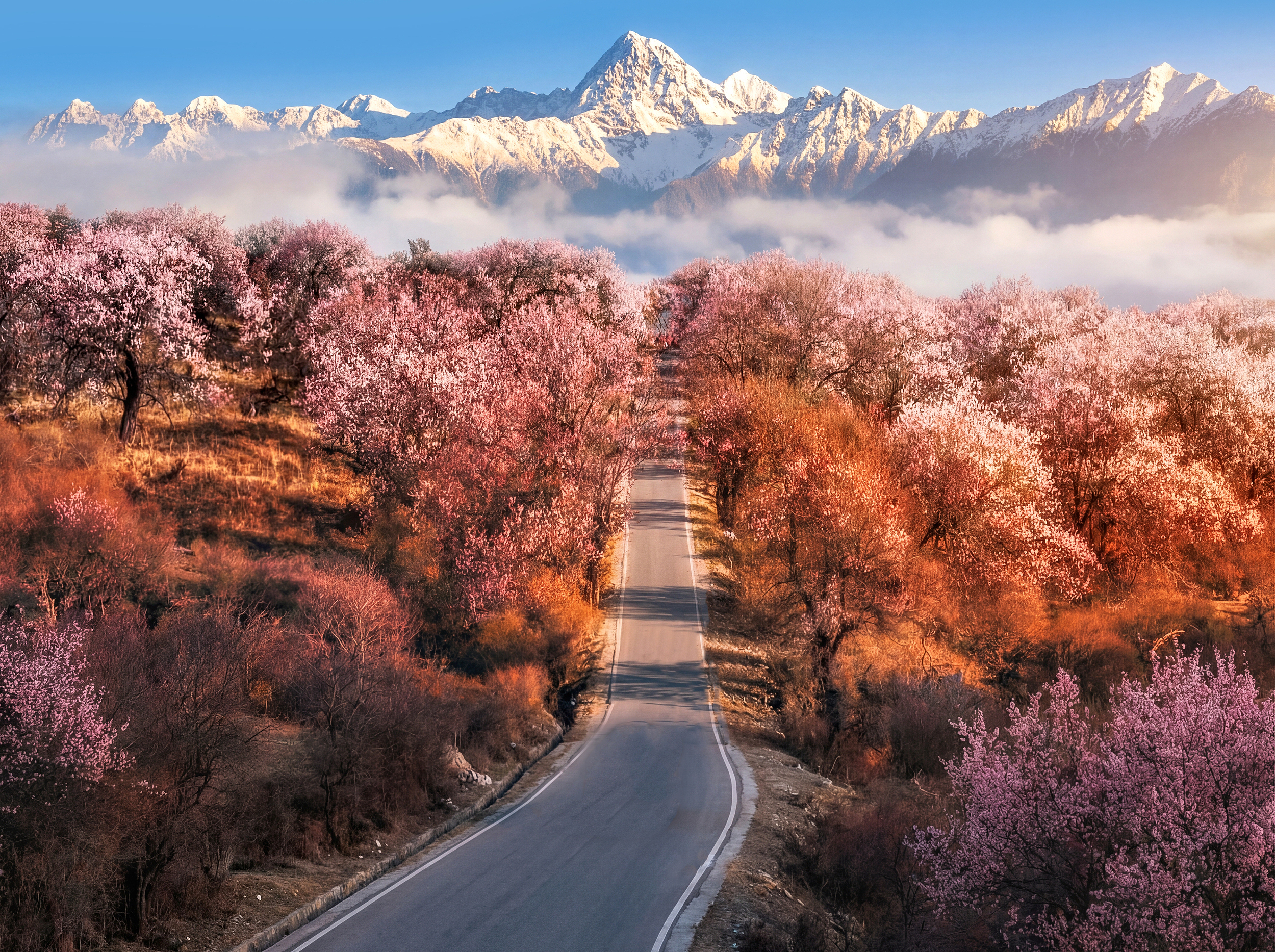 6.西藏林芝 桃花与雪山同框