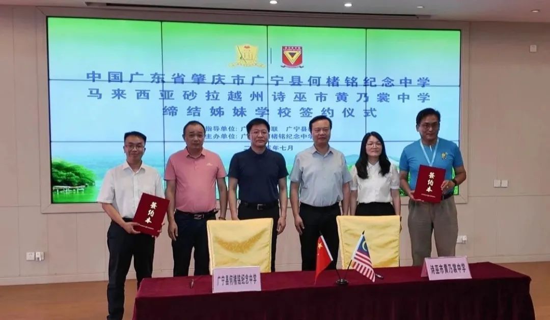 开营庆典上,广宁县何楮铭挂念中学与马来西亚诗巫市黄乃裳中学签署了姊妹学校合营公约,通过“友城+教育”组合拳,股东两地优质教育资源分享、达成上风互补和互利共赢步地。