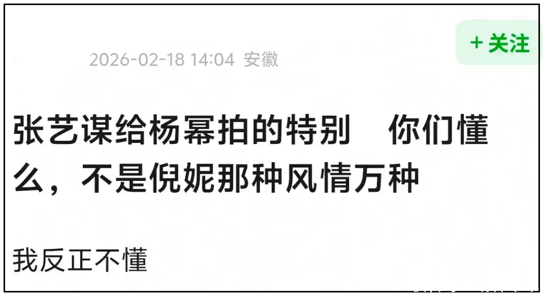 不论是对杨幂也曾对刘诗诗,在张艺谋的镜头之下,完扫数全即是刻板印象。