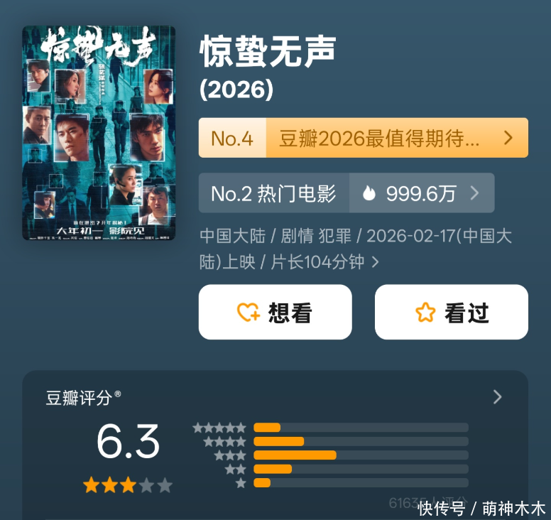 2026年春节档电影络续出分了开云(中国)Kaiyun·体育官方网站-登录入口,有些出乎预见,又似乎原理之中。 当今春节档已有四部真东谈主片开启了评分:《奔突东谈主生3》拿下7.6分,暂列第一;《镖东谈主:风起大漠》评分破7.5,口碑逆袭;《银河入梦》评分7.0,发扬可以;《惊蛰无声》唯有6.3分,肃静垫了底。 除了评分以外,网友还发现,别看《惊蛰无声》日票房排在第二,上座率却是四部破亿新片中最低的,以至也曾六部电影中票房倒挂最严重的,两偶然津数据和排在倒数的《熊猫相关之部落奇遇记》差未几,又