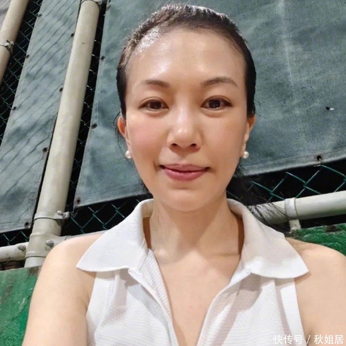 这位年届53岁的女性,体态挺拔利落,马尾高束、步履微小地步入蛋挞店门,素颜出镜却表情奕奕,未施浓妆亦不刻意修饰年事印迹,只凭由内而外散逸的确信与冷静,证实何为“时光千里淀之好意思”。