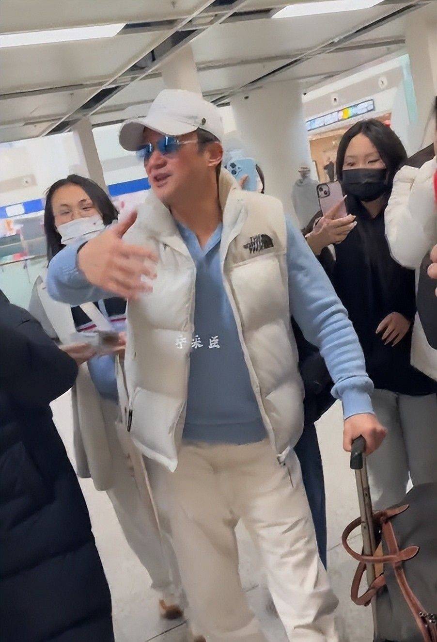 功夫巨星吴京悄然现身于此,一顶素净白帽配浅靛蓝高领毛衣,平日装束与银幕中放荡渲染的形象酿成显豁对照。