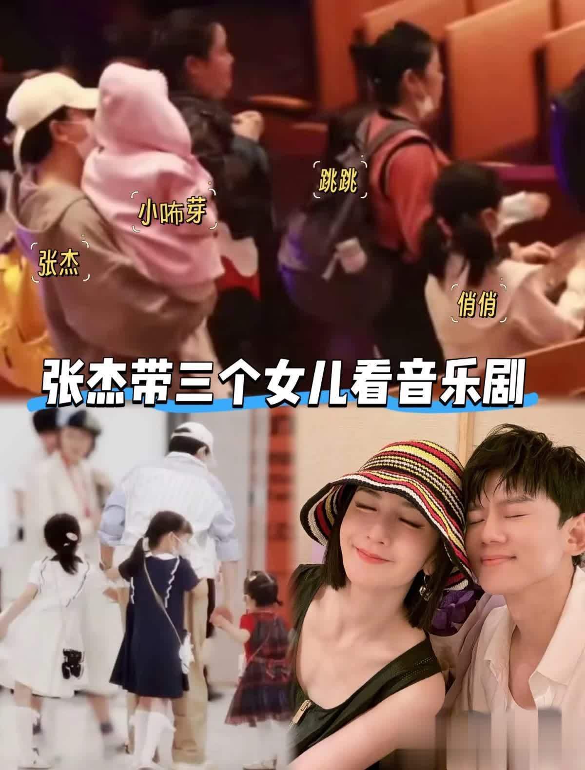 有网友偶遇张杰带三个男儿去看音乐剧,详确啦,最小的男儿小咘芽被爸爸张杰抱在怀里。其实,之前张杰和谢娜带孩子们出去玩的时候,王人是张杰抱着最小的男儿。