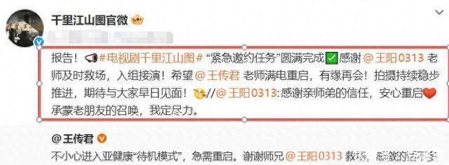 王传君晓示退出,王阳蹙迫救场顺利和张若昀四搭顺利,谍战剧《沉山河图》因威望变动再度激励热议,这下剧集的看点更足了! 在拍摄了20多天后,王传君因为体格亚健康的原因,晓示退出了谍战剧《沉山河图》!王阳则是蹙迫救场进组,接替王传君来演剧中的邪派脚色! 在王传君的案牍里,关于我方师兄王阳能够来救场默示了深深感谢,随后《沉山河图》亦然发文晓示了这个音讯!