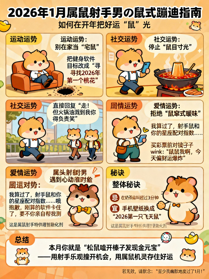 宜:把手机壁纸换成“2026第一只飞天鼠”——示意我方既能接地气囤粮,也能弓手上天疯玩。