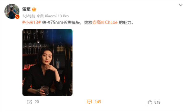 据悉,演员高叶在电视剧《狂飙》播出后备受好评,小米其时就邀请高叶成为小米手机影像推选官。