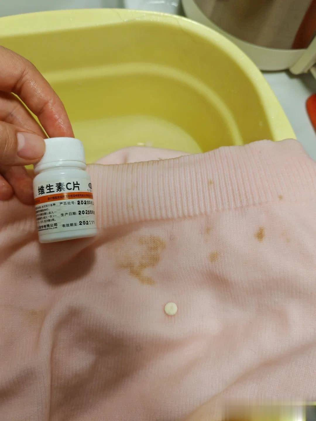 雷同是将vc碾成粉末,然后平直撒在穿戴上有锈迹的方位。先不着急洗,让它静置一忽儿,你会发现豪情变深了,
