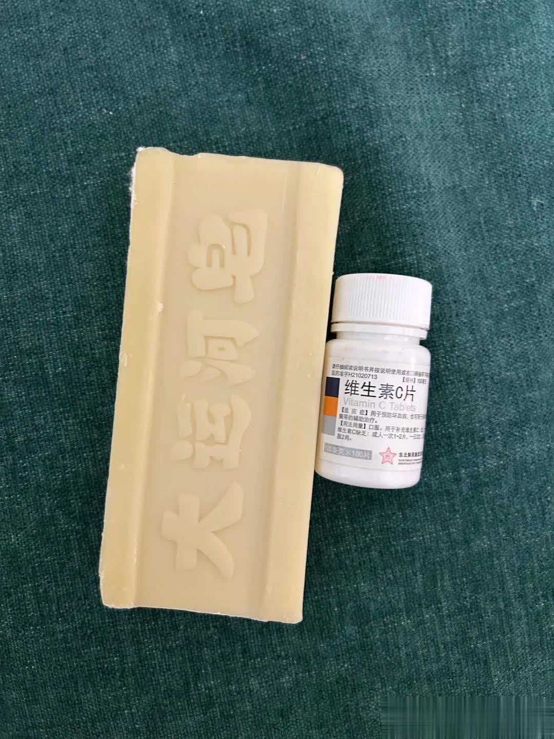 咱们也只需要把多颗vc碾成粉末,然后再洗衣皂刮成碎屑,放到温水中熔化。